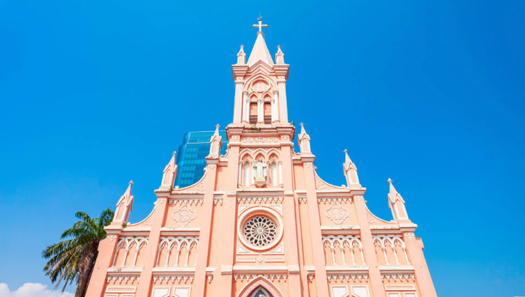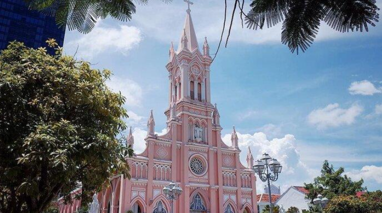 다낭 핑크 대성당은 베트남의 다낭시에 위치한 가톨릭 대성당으로, 다낭에서 가장 아름다운 건축물 중 하나입니다. 대성당은 1923년에 처음 세워졌으며, 그 이후로 몇 차례의 보수와 개장을 거쳐 현재의 모습으로 완성되었습니다.