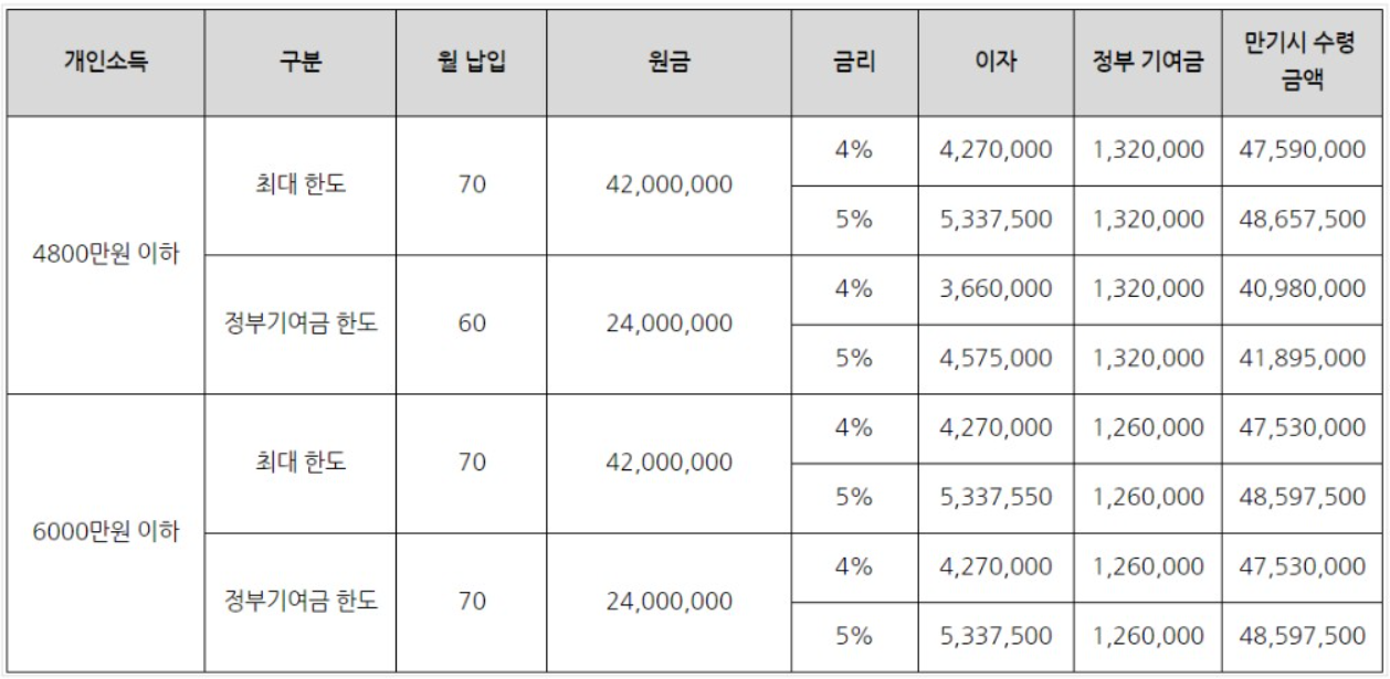 ○ 정부 지원금 : 납입금액의 3~6%